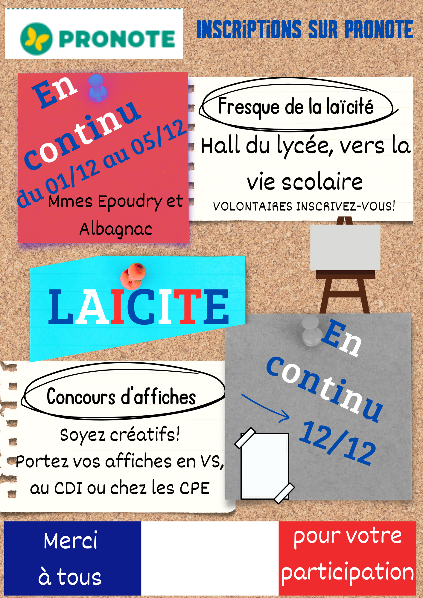 Concours d’Affiches « La Laïcité, c’est nous ! » jusqu’au 12/12/25 – A remettre à la vie scolaire, au CDI ou aux CPE
