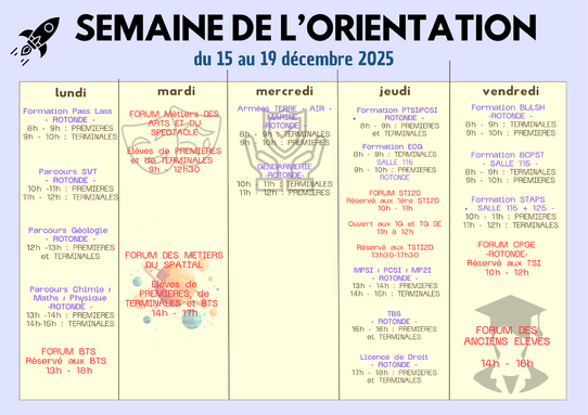 🎓 Semaine de l’orientation : du 15 au 19 décembre 2025