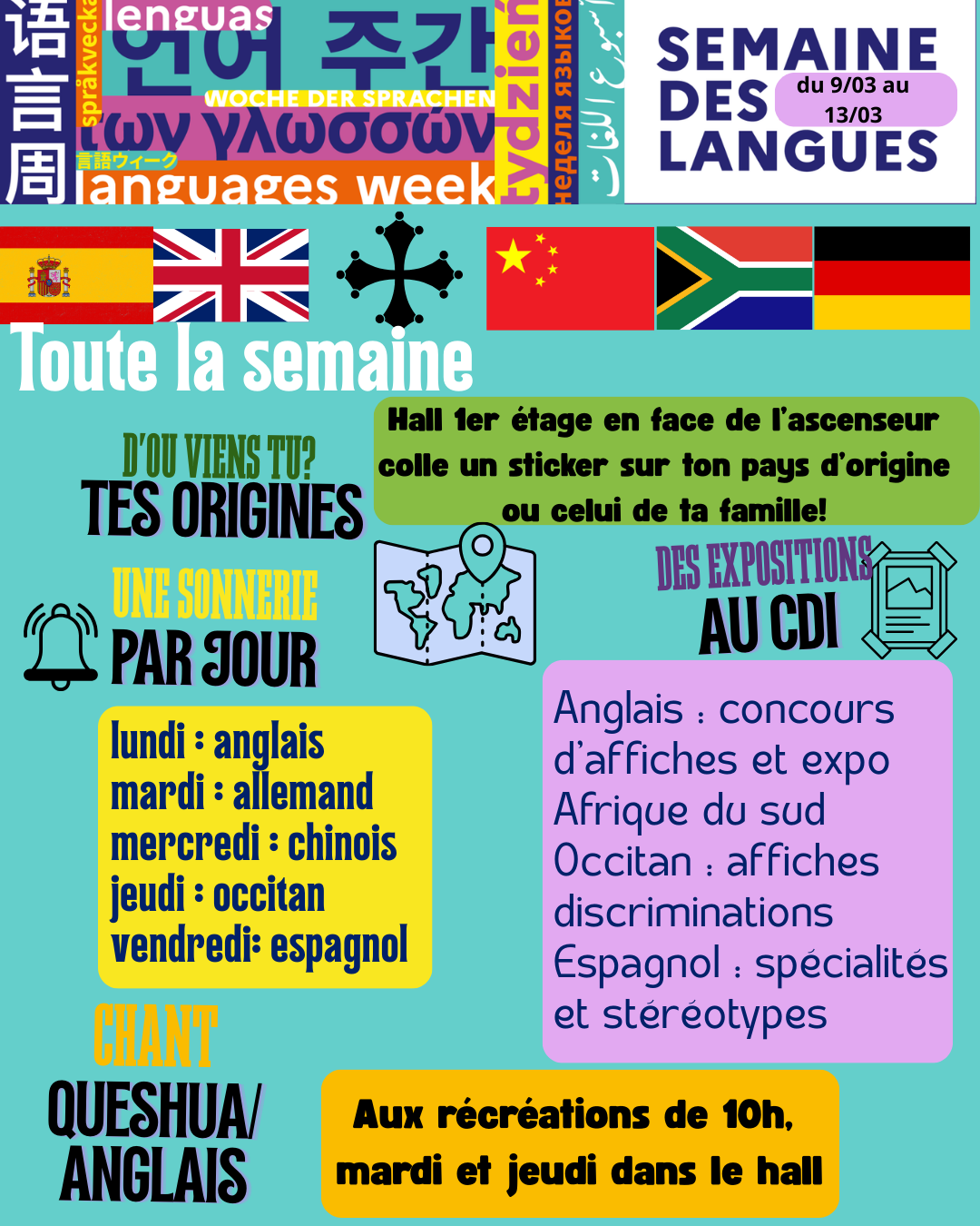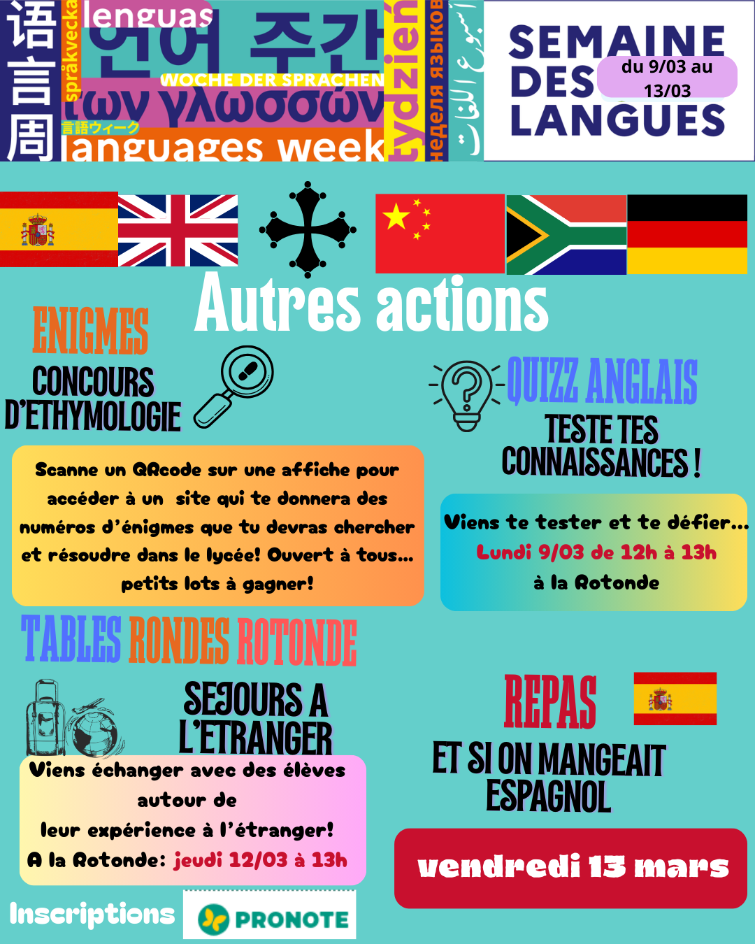 Des actions pour mettre à l'honneur les langues du 9 au 13 mars dans le lycée :